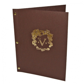 Такое меню очень похоже на меню, скреплённое болтами. С одним небольшим, но очень важным, отличием. Однажды скрепив меню на хольнитены, Вы уже не сможете сменить ни отдельные внутренние листы, ни блок целиком. Придется переделывать всё меню. Такой вариант отлично подходит для заведений с большим потоком посетителей, где меню снашивается быстрее, чем меняются цены.